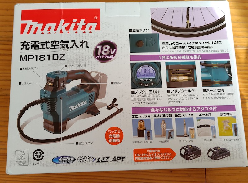 マキタの充電式空気入れ MP181を購入しましたのでそのレビューです。